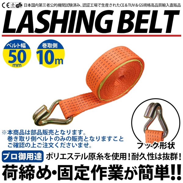 ■ ガチャガチャ ラッシングベルト 部品販売 パーツ売り フック 巻側 ベルト 10m ●国際標準化ISO9001:2008認証工場生産CE&TUV&GS規格高品質輸入直販品です。 ●日本国内第三者公的機関試験済み、安全、安心な製品です。 ●荷物をキズから守るためにスリーブを装備しています。 ●巻側長さ(m):10 ●破断荷重(kg):4000 ●材質(ベルト): ポリエステル原糸100% ●PL保険(生産物弁償責任保険)加入 ●生産国:中国