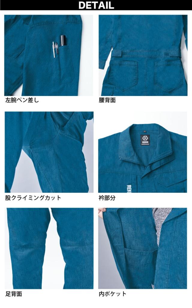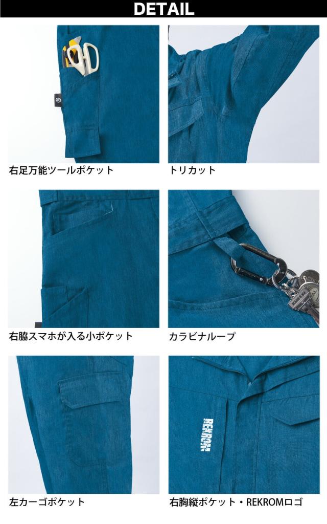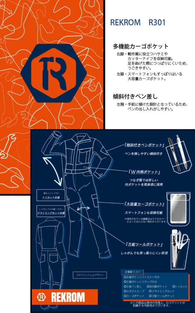 REKROM つなぎ 長袖 つなぎ服 ツナギ服 ツヅキ服 オールシーズン 多機能カーゴポケット R301 オートバイ 作業着 作業服 ユニフォーム