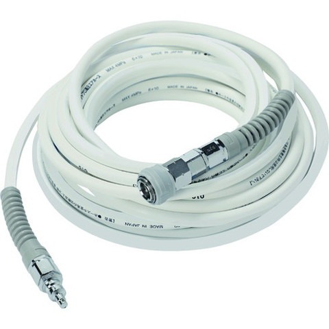 ●外径(mm):10●色:白●接続継手:高圧用カップリング●内径(mm):6●全長(m):10●肉厚(mm):2●最高使用圧力(MPa):4.0●許容曲半径:18mm●使用温度範囲(℃):-5℃〜+60℃●使用流体:空気