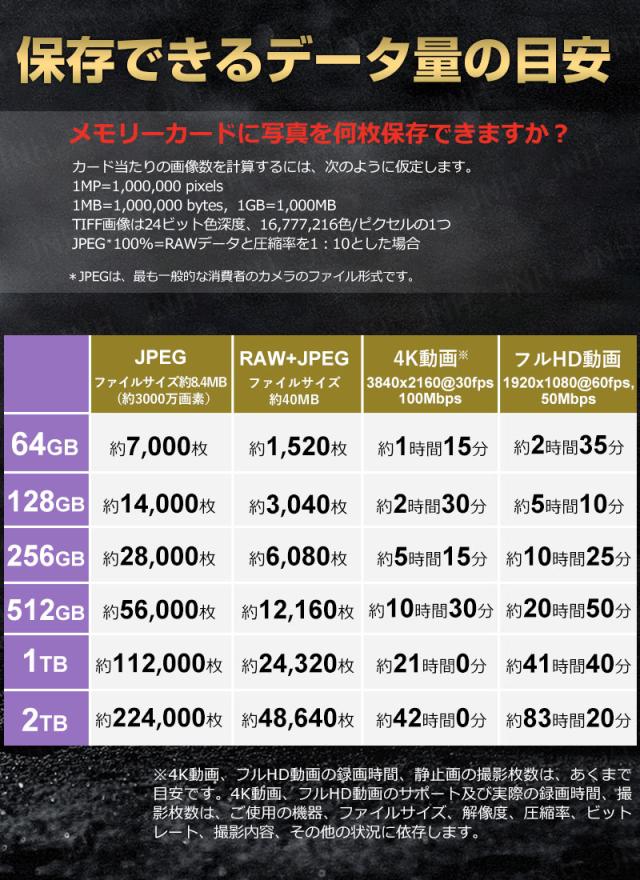 *スピードクラス:UHSスピードクラス3、SDスピードクラス CLASS 10 、Video Speed Class V30
