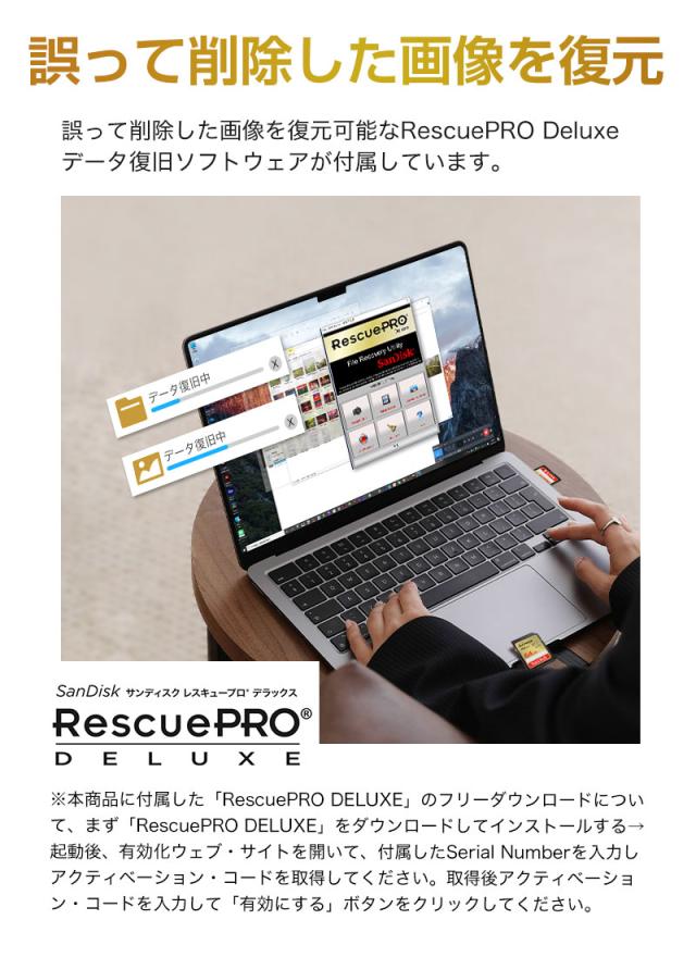 ※本商品に付属した「RescuePRO DELUXE」のフリーダウンロードについて、まず「RescuePRO DELUXE」をダウンロードしてインストールする→起動後、有効化ウェブ・サイトを開いて、付属したSerial Numberを入力しアクティベーション・コードを取得してください。取得後アクティベーション・コードを入力して「有効にする」ボタンをクリックしてください。