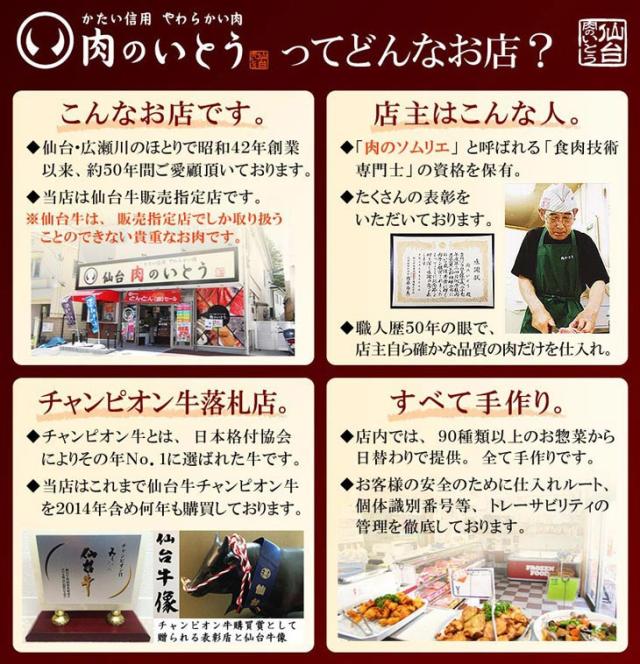 | 原材料 | 野菜(たまねぎ、たけのこ)、牛肉(国産仙台牛)、しらたき、つゆ、清酒、みりん、醤油、植物油脂、ビーフエキス、砂糖/増粘剤(加工デンプン)、調味料(アミノ酸等)、水酸化カルシウム、(一部に小麦・牛肉・さば・大豆を含む) |