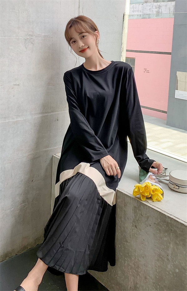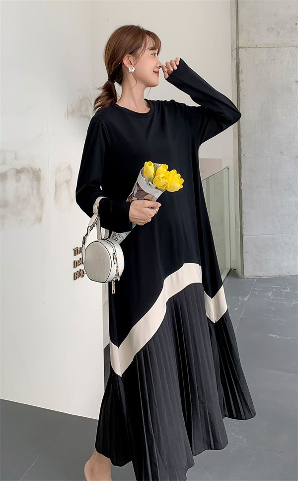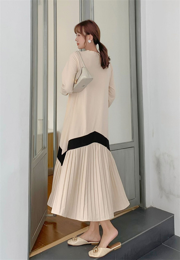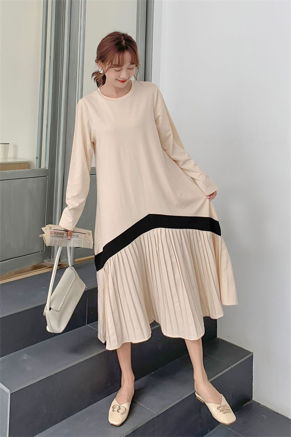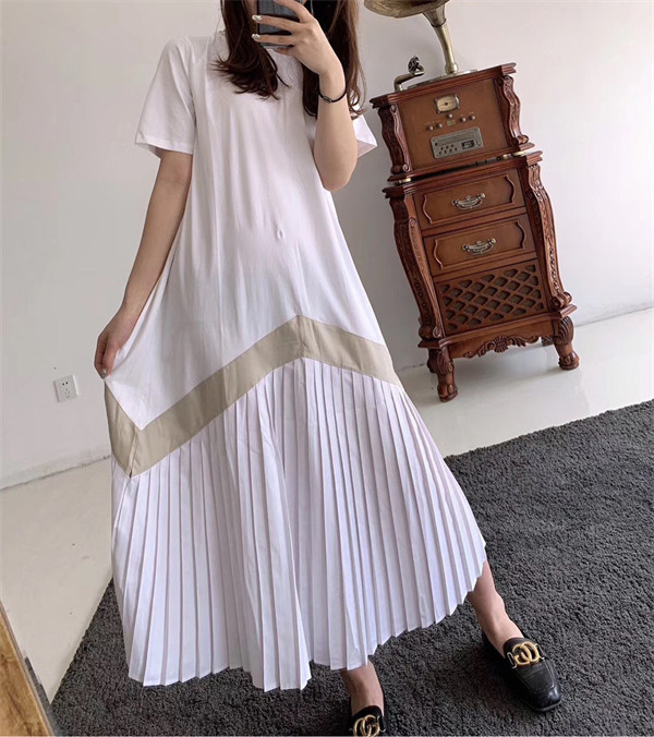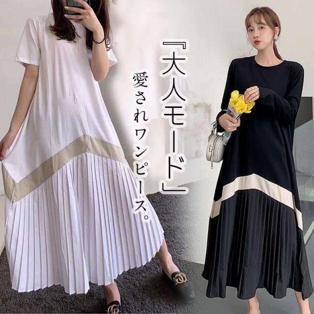 限定値下げ!ロングワンピース ワンピース レディース プリーツワンピース 春 夏 半袖 ドッキング 体型カバー ロング丈 ゆったり 着痩せ フレア 40代 50代