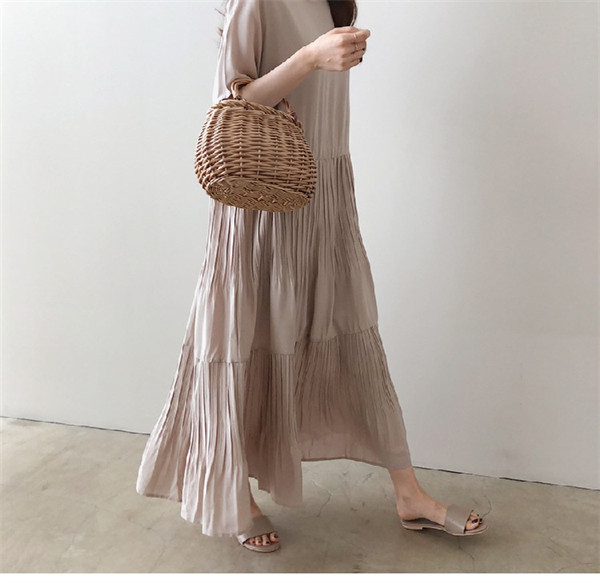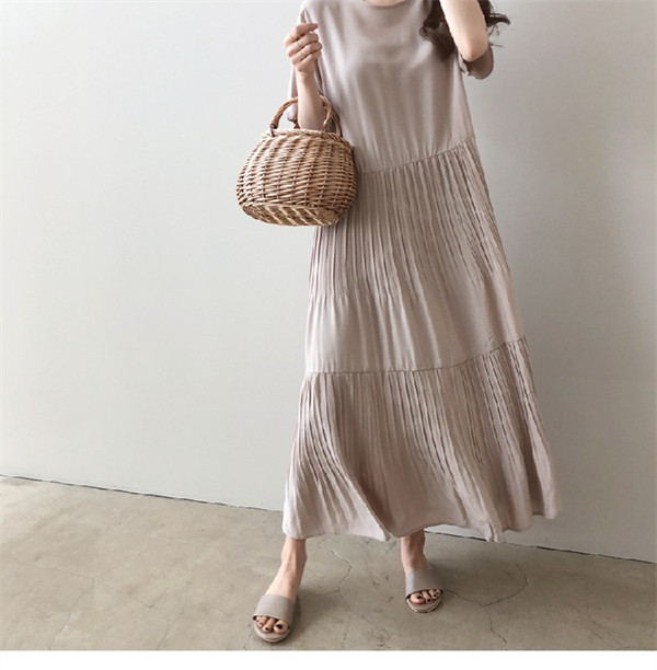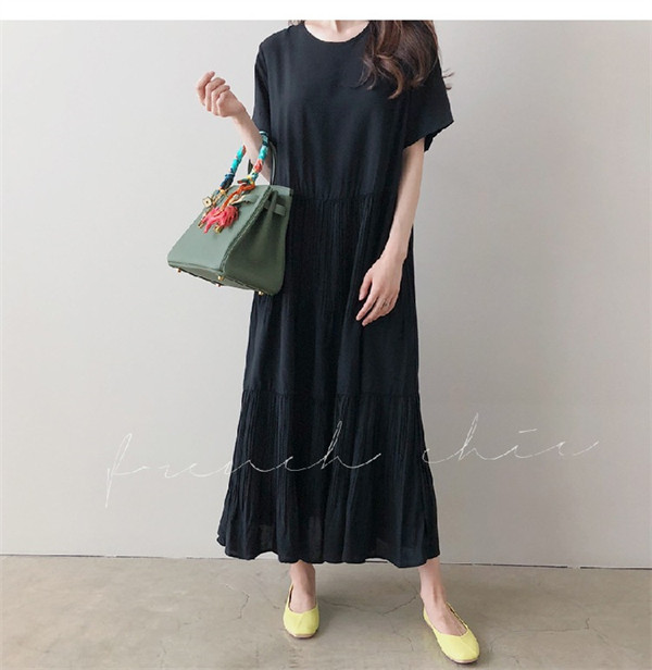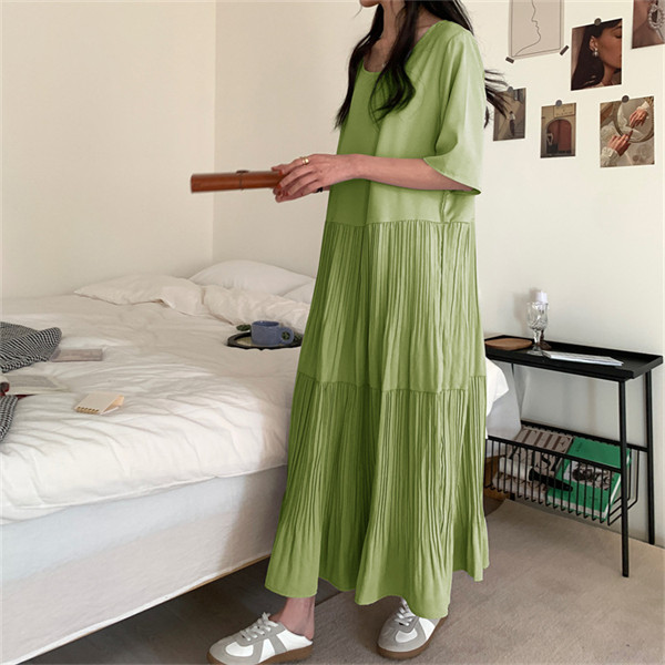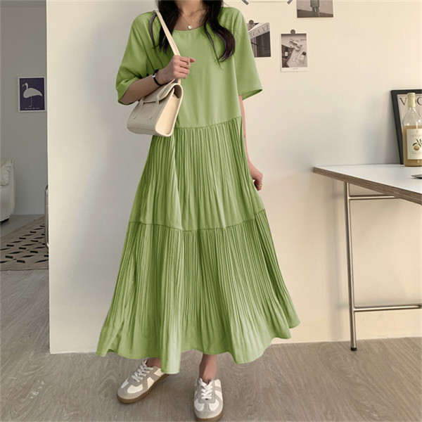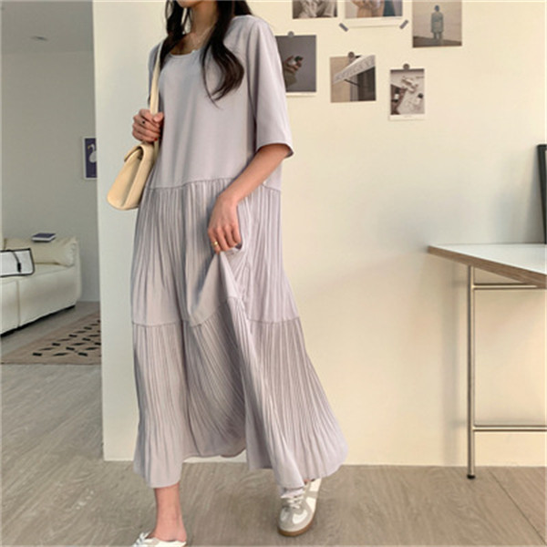 限定値下げ!ワンピース レディース 春夏 半袖ワンピース 40代 キレイめ マキシワンピース 無地 プリーズスカート aライン ゆったり オシャレ 上品 着痩せ