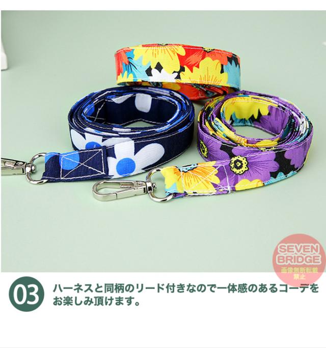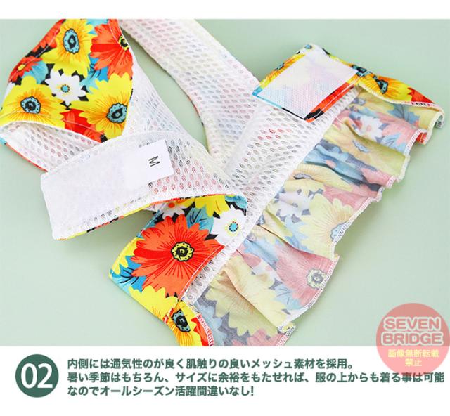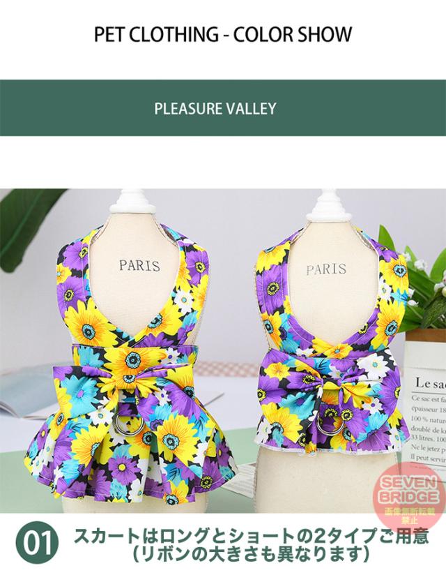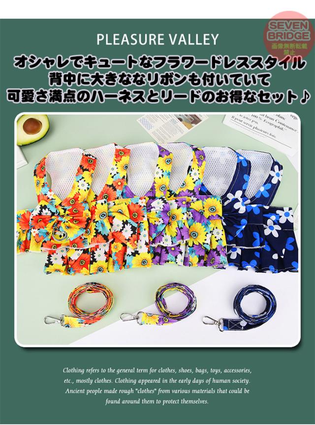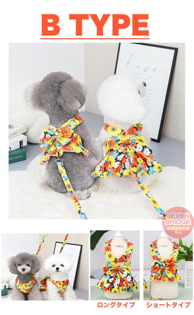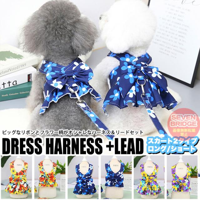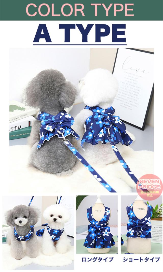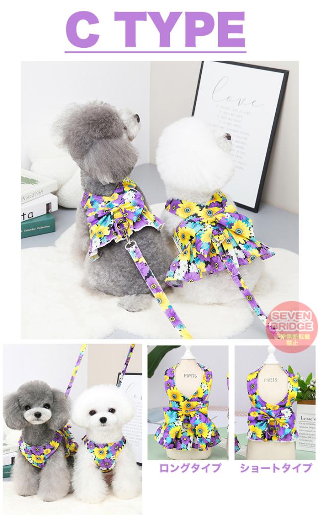 犬 ハーネス リード 付 ドレス リボン フラワー ウェアハーネス ペット 服 ワンピース 胴輪 キャット ドッグ h0425