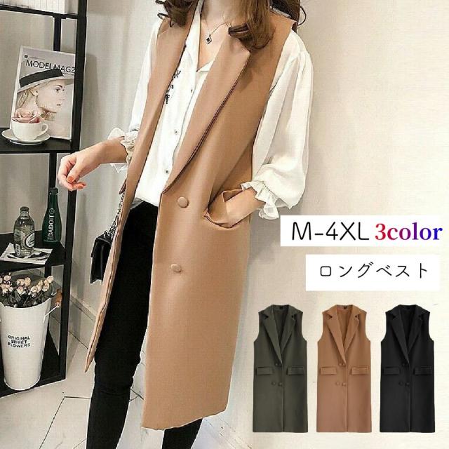 ロングベスト ジレ コート ジレンチ ベスト 大きいサイズ有り レディース 女性 婦人 ノースリーブジャケット アウター チョッ
