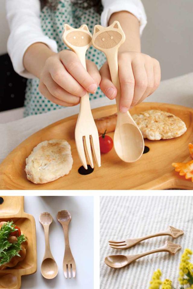 ●お子様用の木製フォークとスプーンのセットです。