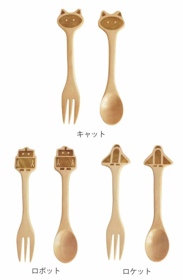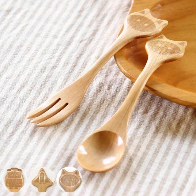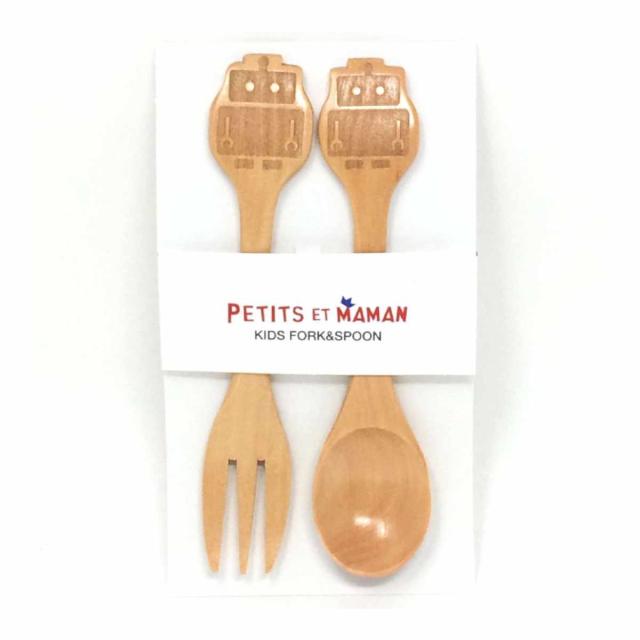フォーク&スプーンセット プチママン 木製 ( 子供用 食器 カトラリー スプーン フォーク 木製スプーン 木製フォーク ねこ ネコ 乗り物 天然木 木 キッズ ジュニア スープ ポタージュ )