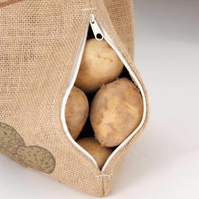 じゃがいもや玉ねぎなどの常備野菜の常温保存に便利なベジバッグ。遮光性、通気性に優れているので、安心して保存できます。人参、じゃがいも、玉ねぎのイラストがついた3色展開なので、中に入れる野菜に合わせて使い分けてもいいですね。