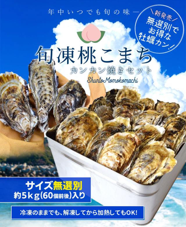 牡蠣 カンカン焼き セット サイズ無選別 5kg(60個前後入) 冷凍牡蠣 送料無料 桃こまち 鳥羽産 中缶入(牡蠣ナイフ・片手用軍手付き)殻付き牡蠣 一斗缶 海鮮バーベキューセット 寒中見舞い ギフト旬凍桃こまち