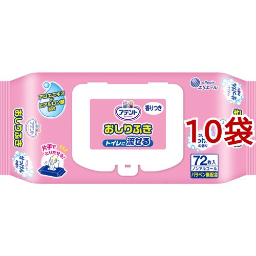 アテント 流せる おしりふき せっけんの香り(72枚入*10袋セット)[おしりふき]