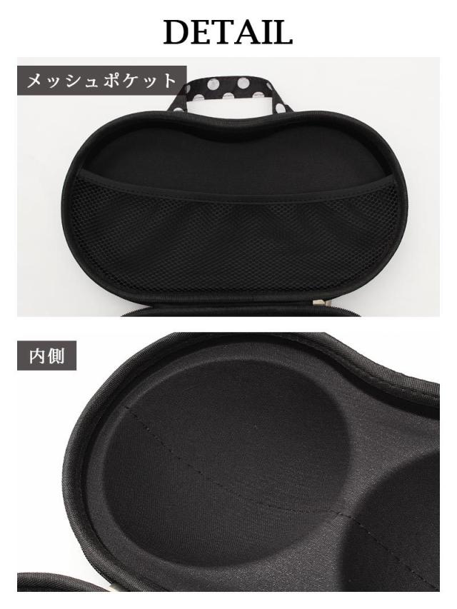☆ブラックに白のドットとレースが施された大人っぽいデザインのブラケースは安心感あるハードタイプに持ち手が付いているのでトラベル用としてやジムなど持ち運びにも便利な小物入れです♪