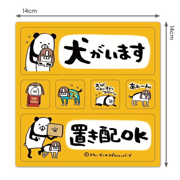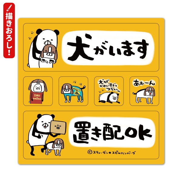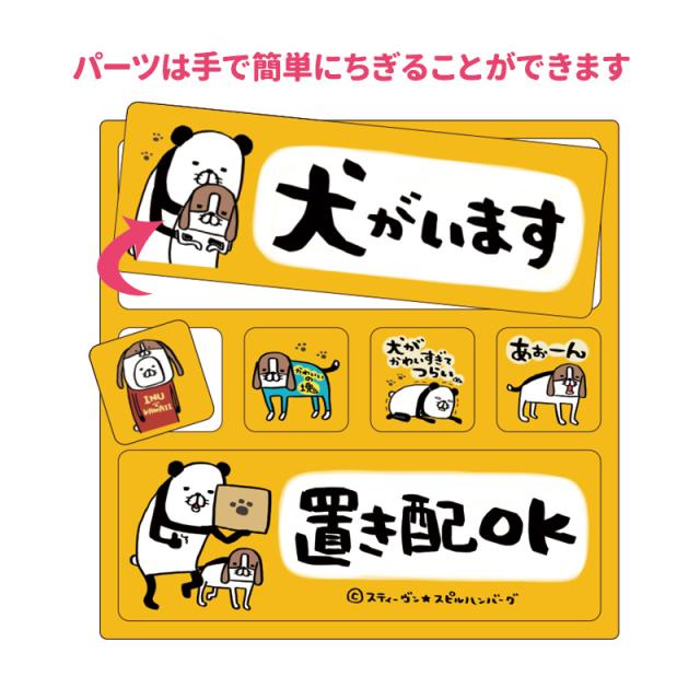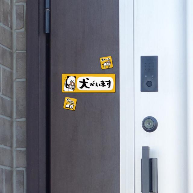 パンダと犬 描き下ろし!サインマグネットステッカー 2メッセージセット 犬がいます 置き配OK パンダと梅吉 玄関ドアお知らせマグネット ゆうパケット対応210円〜