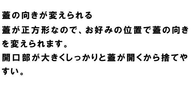 開口部が大きくしっかりと蓋が開くから捨てやすい。