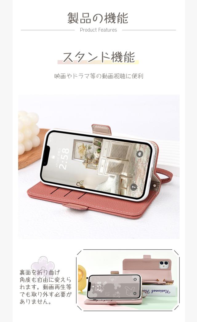 - 手帳型で画面の保護にもなり、とても使い勝手がよく、ピンク色とても可愛いです。