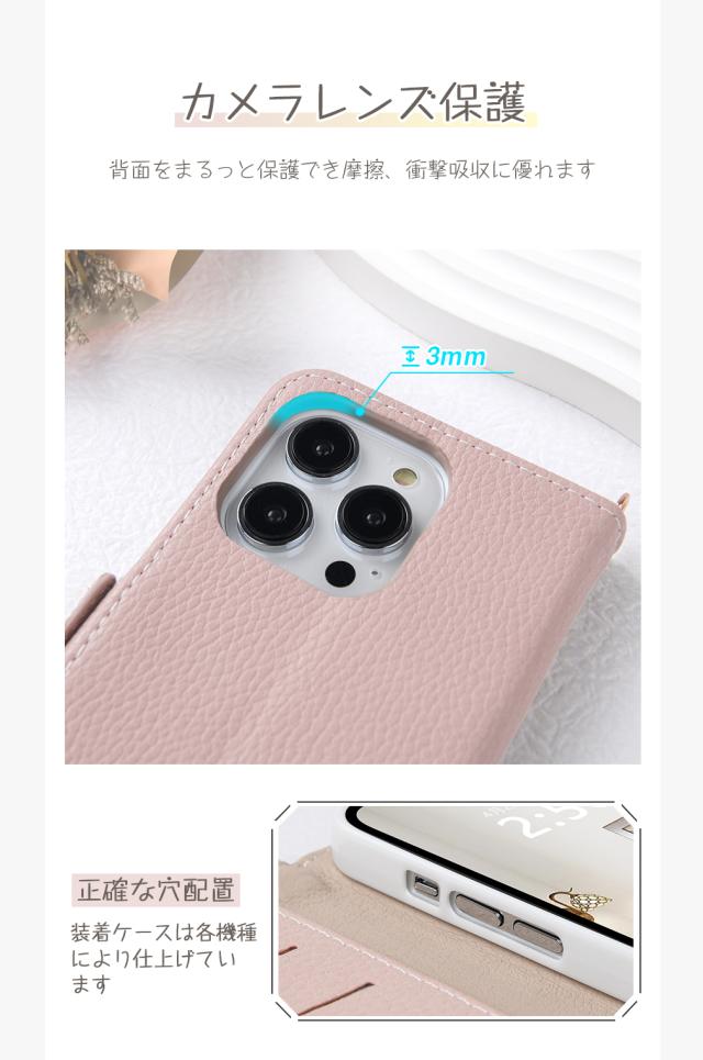 耐熱性と柔軟性を誇るPUレザーから作られていて、滑りにくく、落下時の衝撃を効率よく吸収するようにケースの各コーナー内側が設計されています。手帳型ならではの全面保護機能でディスプレイはもちろん、背面もしっかりガードします。さらにカメラレンズ保護構造でスマホ本体を傷から360度しっかり保護してくれます