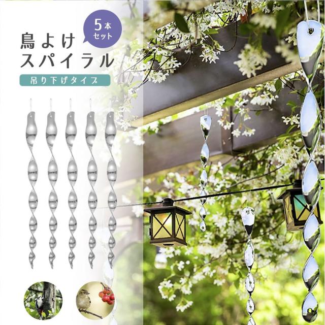 【在庫限り】鳥よけ 吊り下げ シルバー スパイラル 5個セット ベランダ ドリル 螺旋 回転 玄関 ハト避け 予防 畑 バード 防鳥 反射板 カラス対策 防虫 からすよけ 家庭菜園 農業用品 資材 ベランダ 田畑 鳥害対策 送料無料 ハト ツバメ