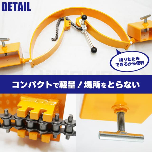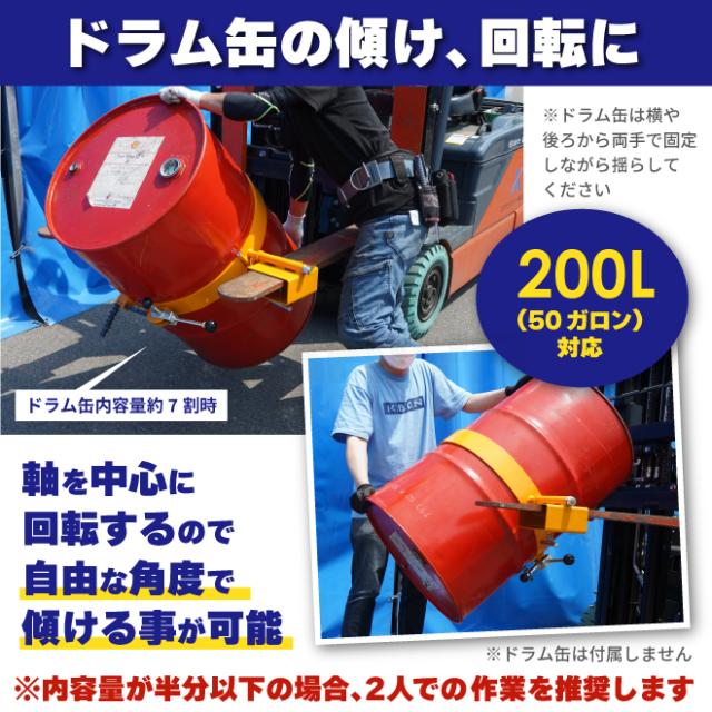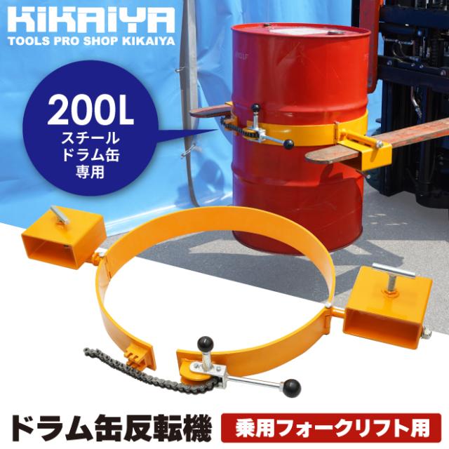 ドラム缶反転機 コンパクト 手動 乗用フォークリフト用 200L スチールドラム缶 耐荷重230kg チルター 回転 KIKAIYA