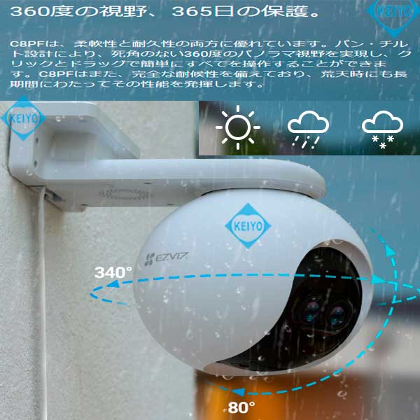 CS-C8PF【屋外設置対応Wi-Fi機能搭載200万画素パンティルトネットワークカメラ】 【EZVIZ】 【イージービズ】