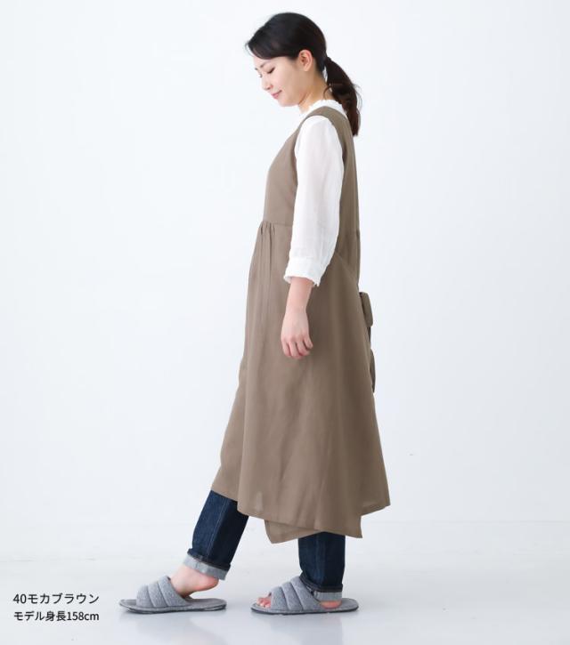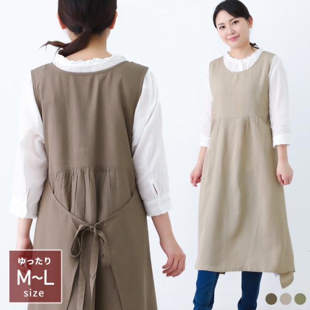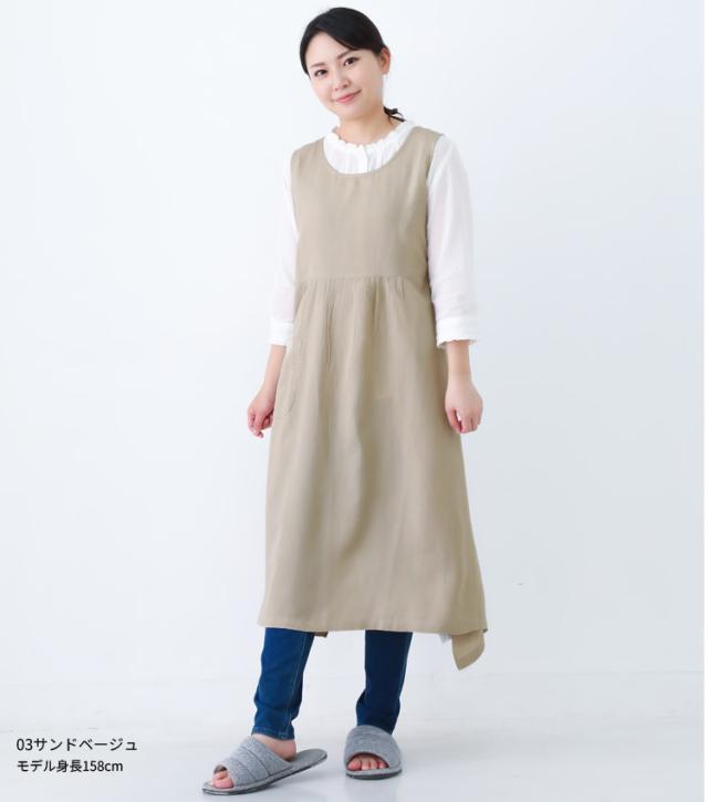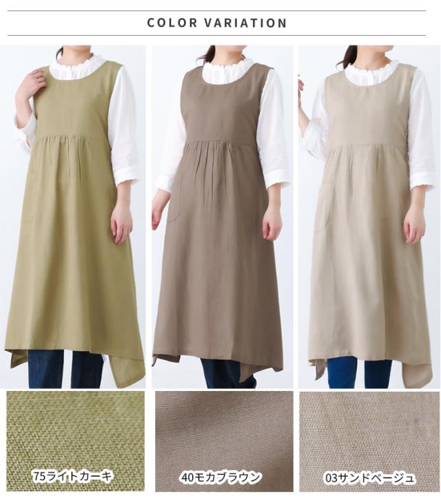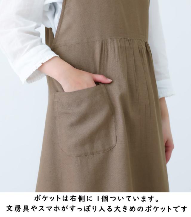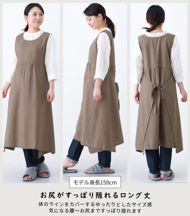 綿麻混 ワンピース タブリエ エプロン ワンピースエプロン チュニック タブリエ ロング丈 かわいい 可愛い 料理 ギフト プレゼント 保育士 エプロン ゆったり 大きいサイズ 大きい 母の日 麻 リネン 綿