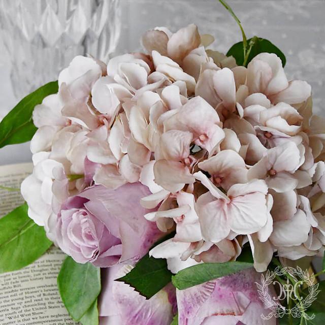 アジサイ&ローズミックスフラワーブーケ 8427【ハルモニア オブジェ アーティフィシャルフラワー ブーケ リーフ お花 父の日 母の日 敬老の日 クリスマス】