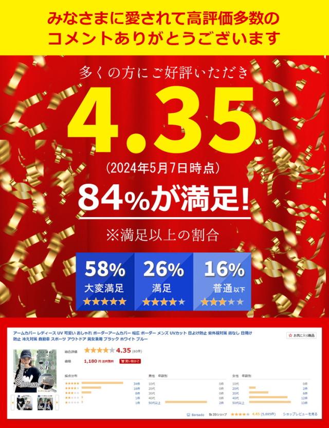 二の腕部分にはゴムが使用されているので、女性だけでなく男性も着用できます