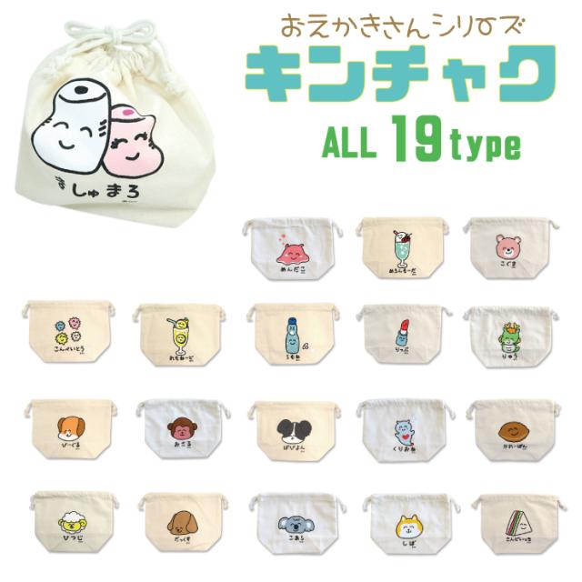 【6点までメール便280円対応】キンチャク pouch-03 おえかきさん ポーチ 買い物 バッグ マチ付き 8種類 おもしろ雑貨 生活雑貨 カラフル【キャラクター 軽量 収納 可愛い カバン キュート キッズ 通園 通学 】┃