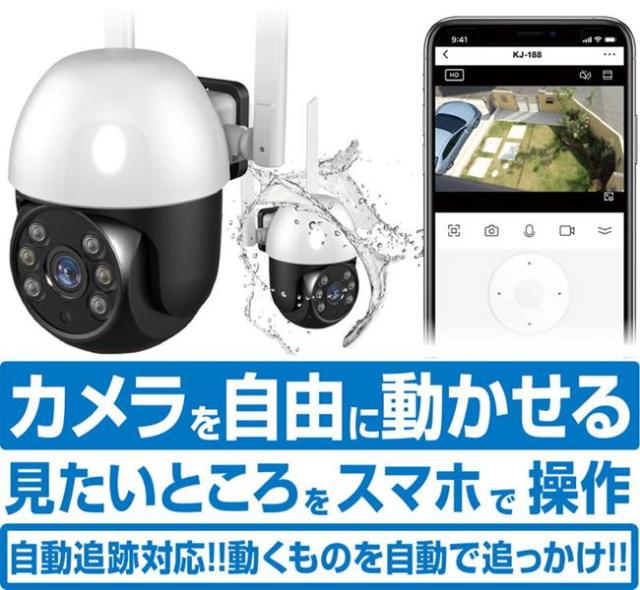 外出先からスマホで映像を確認できる、首振タイプの防水対応スマートカメラ