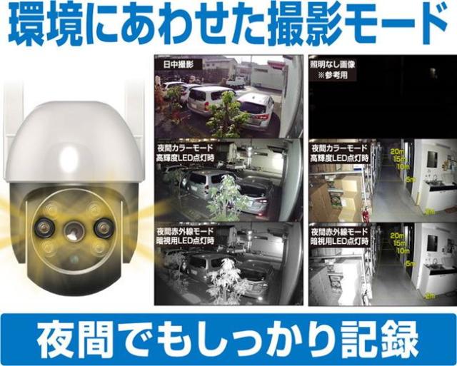 夜間カラーモード撮影:高輝度LED搭載で暗闇でもカラー録画