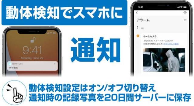 動体検知で自動追跡や記録写真撮影とスマホへの通知、SDカードへの録画が可能