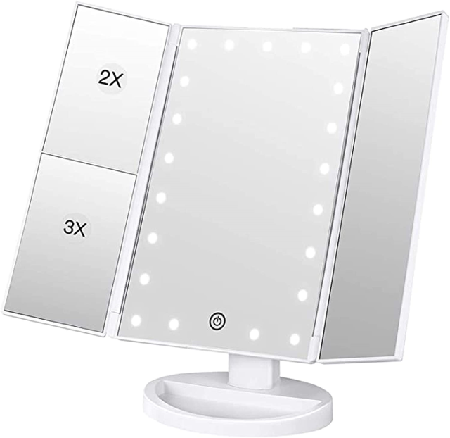 鏡 LEDライト付き 化粧鏡 メイクミラー スタンドミラー 女優ミラー 卓上 三面鏡 スタンドミラー 折りたたみ ミラー
