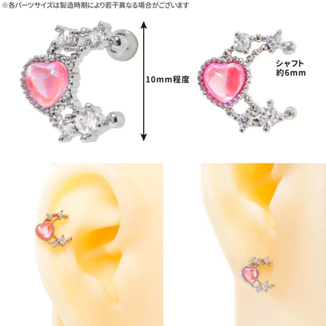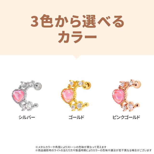 ムーン&ハート ピンク ジェム バーベル 14G 16G 18G 20G サージカルステンレス ジュエル シルバー ゴールド ピンクゴールド イヤーロブ ヘリックス 軟骨ピアス ボディピアス ムーン ハート ピンク ジュエル