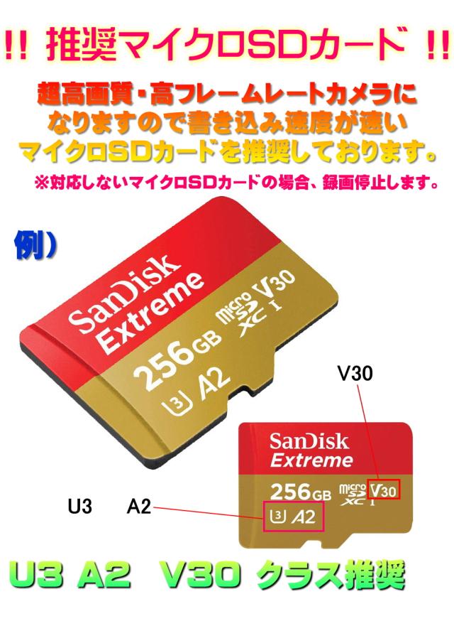 ※マイクロSDカードは高速記録が可能な、U3 (V30) A2 を強く推奨します。