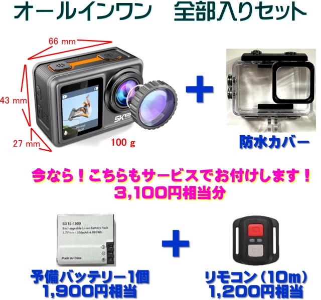 最新型 全部入り!オールインワンセットの超高画質5Kアクションウエアラブルカメラ TB-5K S81