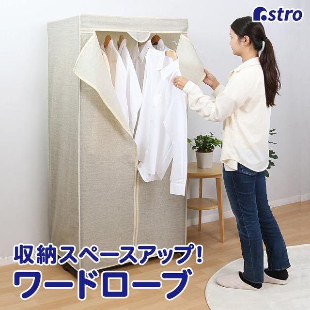 アストロ ワードローブ W75×D50×H160cm カバー付き ハンガーラック 収納ラック クローゼット 衣類収納 310-24