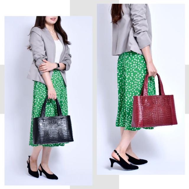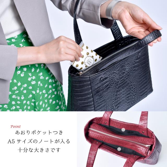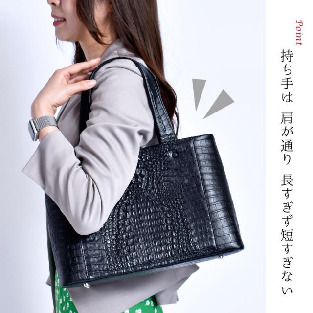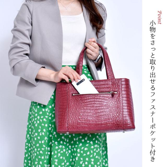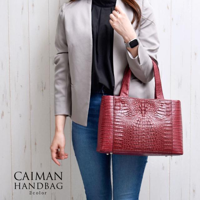 カイマン 本革 ハンドバッグ レディース 女性 ワニ革 背ワニ ホーンバック 大容量 軽い 牛革 型押し ブラック ワイン トートバッグ フォーマル 手提げ 鰐革 レザー カジュアル 他収納 大人 上品 トート 鞄 自立 底鋲 婦人 人気 風水 母の日 ギフト 送料無料