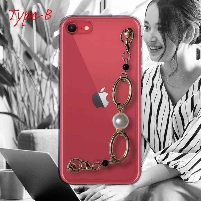 【ワード】 iPhoneSE3 カバーアイフォン エスイー スリー 第三世代 ケース 韓国 スマホストラップ スマホチェーン スマホキーホルダー ビーズチャーム ビーズストラップ 背面 斜め 透明