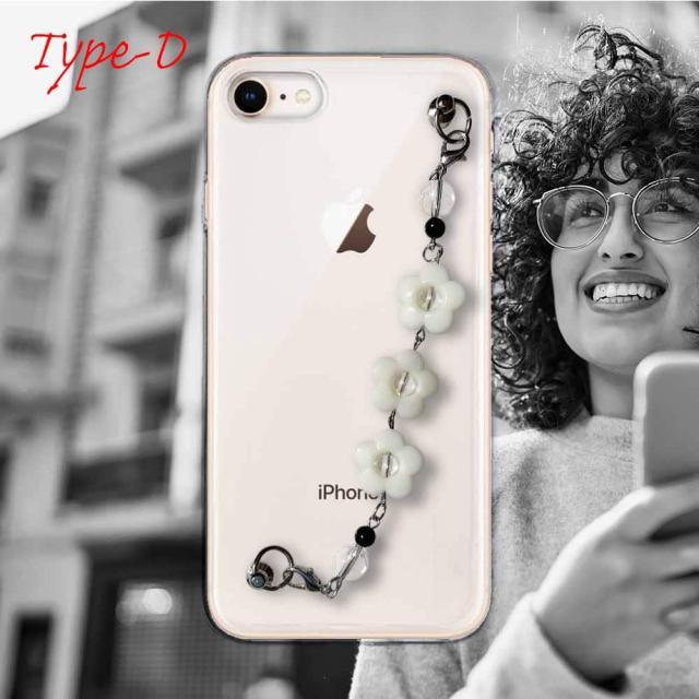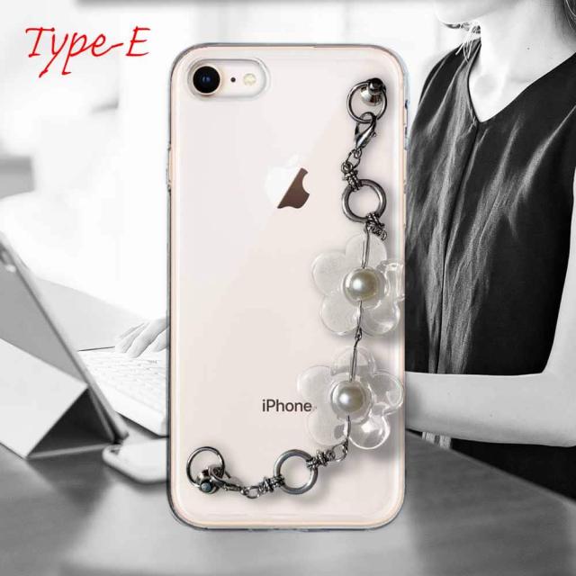 【ワード】 iPhone8 カバーアイフォン エイト ケース 韓国 スマホストラップ スマホチェーン スマホキーホルダー ビーズチャーム ビーズストラップ 背面 斜め 透明