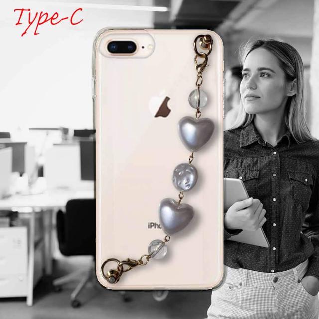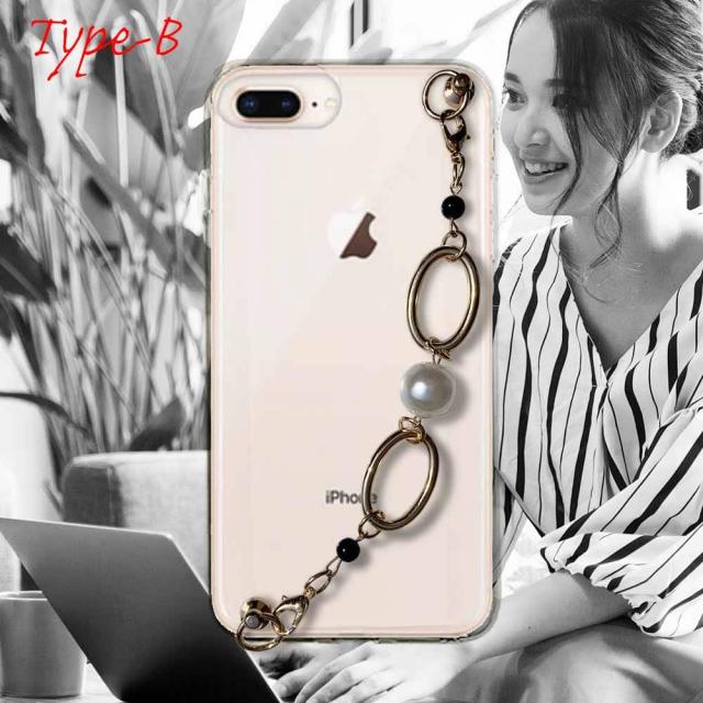 【ワード】 iPhone8 Plus カバーアイフォン エイト プラス ケース 韓国 スマホストラップ スマホチェーン スマホキーホルダー ビーズチャーム ビーズストラップ 背面 斜め 透明