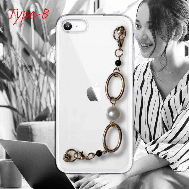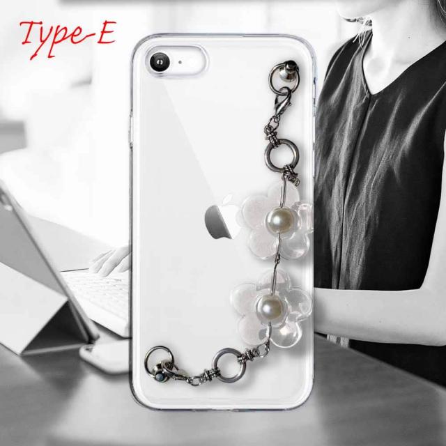 【ワード】 iPhoneSE2 カバーアイフォン エスイー ツー 第二世代 ケース 韓国 スマホストラップ スマホチェーン スマホキーホルダー ビーズチャーム ビーズストラップ 背面 斜め 透明