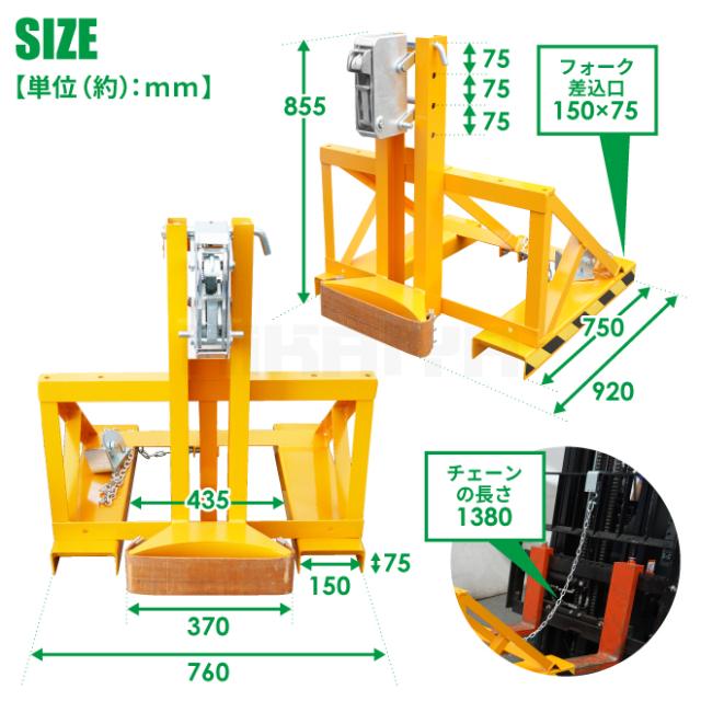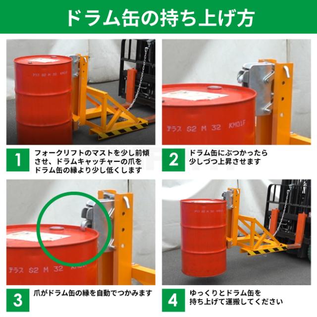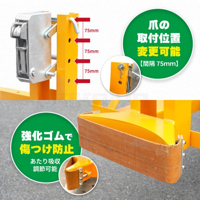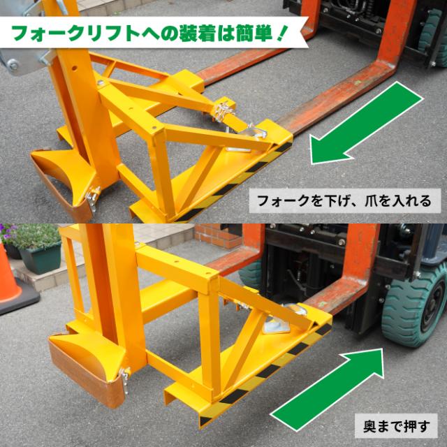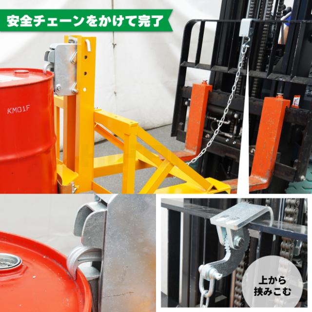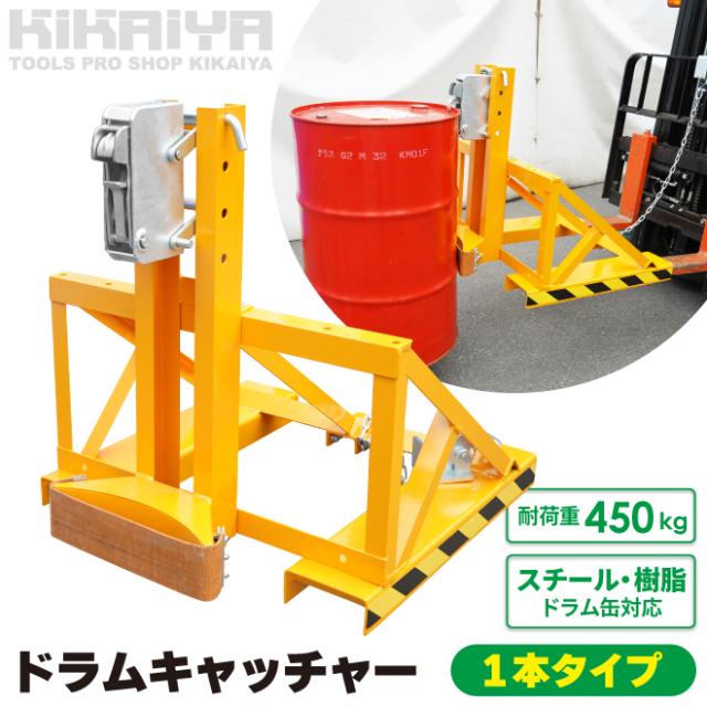 ドラムキャッチャー 1本タイプ 耐荷重450kg ドラム缶キャリー ドラム缶 フォークリフト用 アタッチメント ドラム缶運搬金具 KIKAIYA
