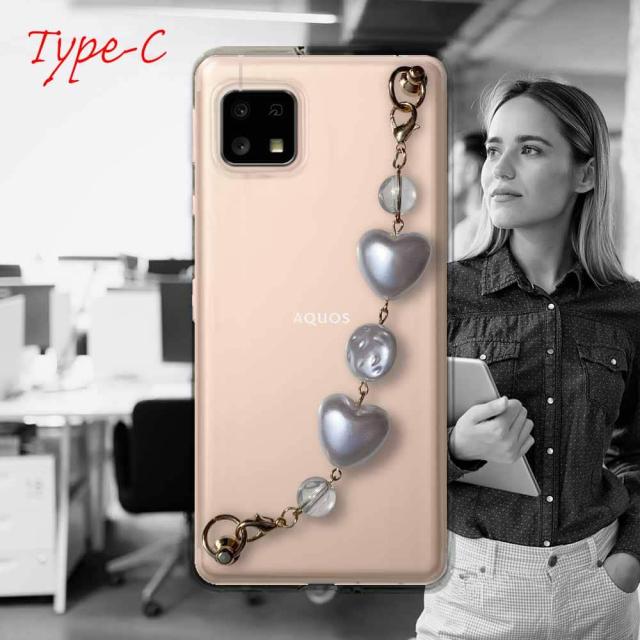 【ワード】 AQUOS sense 5G カバーアクオス センス ファイブ ジー ケース 韓国 スマホストラップ スマホチェーン スマホキーホルダー ビーズチャーム ビーズストラップ 背面 斜め 透明