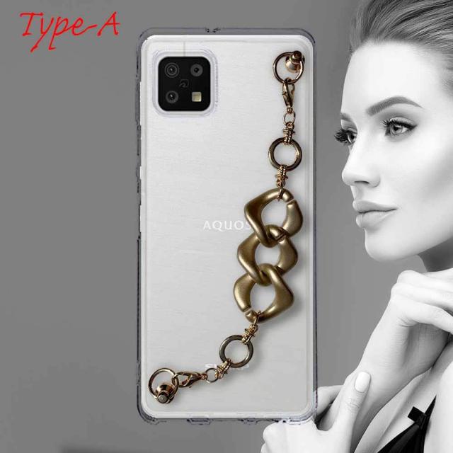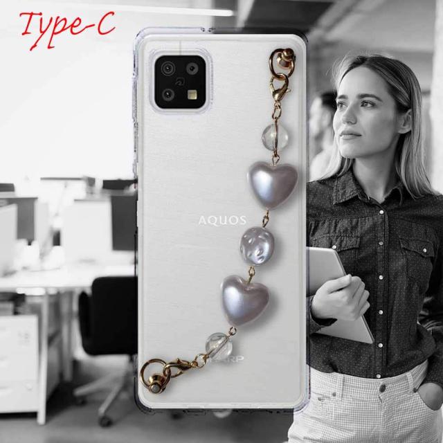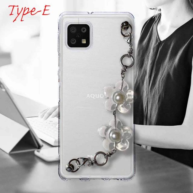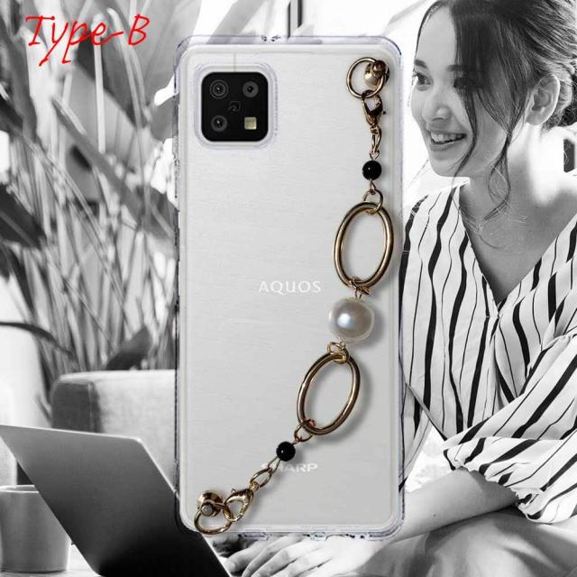 【ワード】 AQUOS sense6 カバーアクオス センス シックス ケース 韓国 スマホストラップ スマホチェーン スマホキーホルダー ビーズチャーム ビーズストラップ 背面 斜め 透明