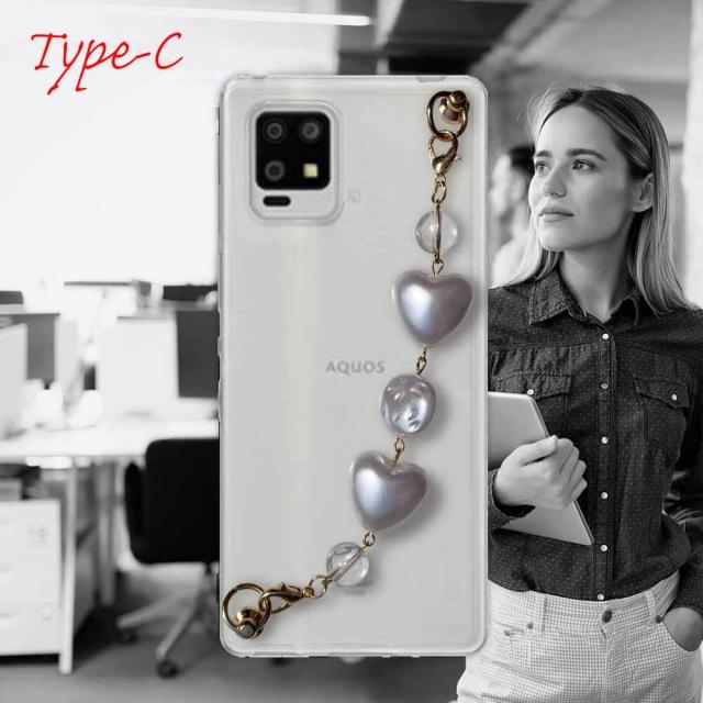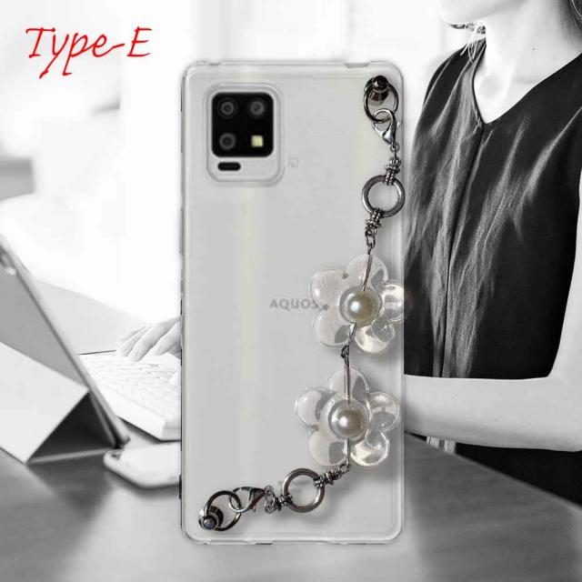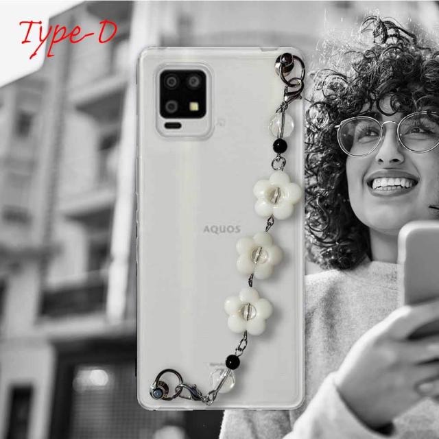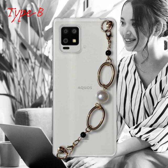 【ワード】 AQUOS zero6 カバーアクオス ゼロ シックス ケース 韓国 スマホストラップ スマホチェーン スマホキーホルダー ビーズチャーム ビーズストラップ 背面 斜め 透明