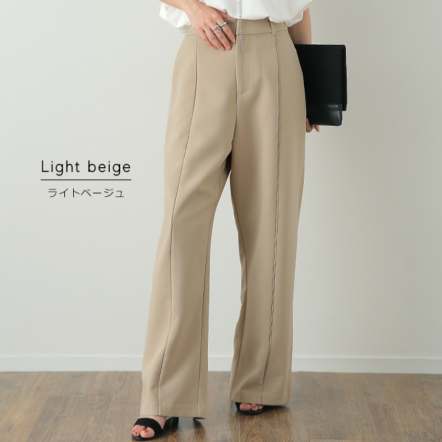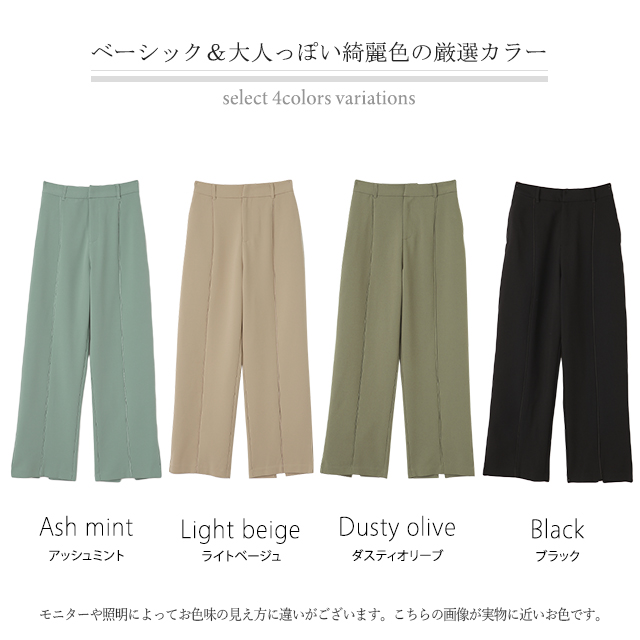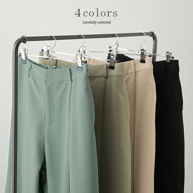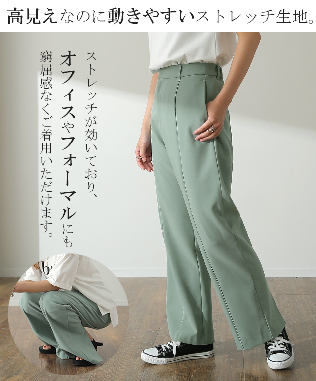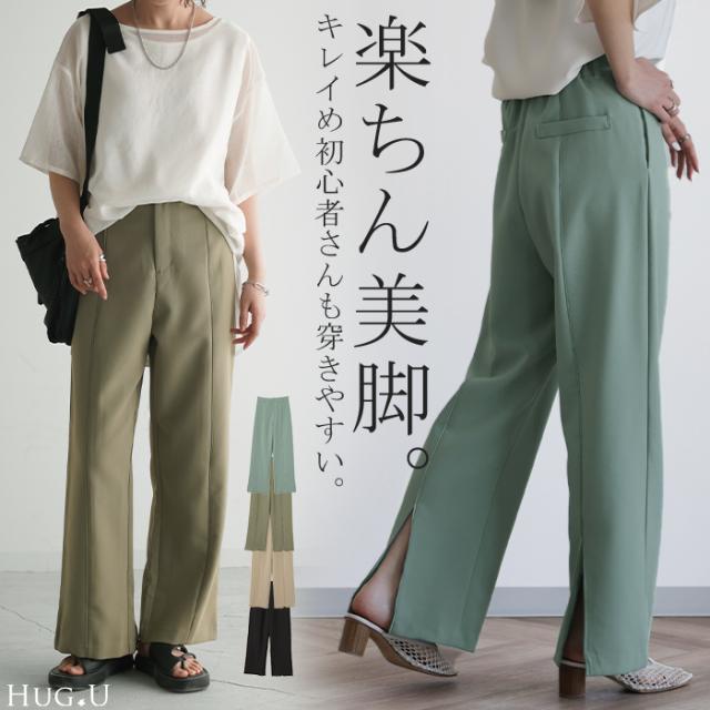 パンツ『 高 級 感 』センターライン フレアパンツ スリット 楽 きれいめ ストレートパンツ レディース ボトムス ゆったり スラックス カラーパンツ ゴム ロング ワイド フレア テーパード ストレート ズボン 大きいサイズ 黒 HUG.U 夏 秋 秋新作