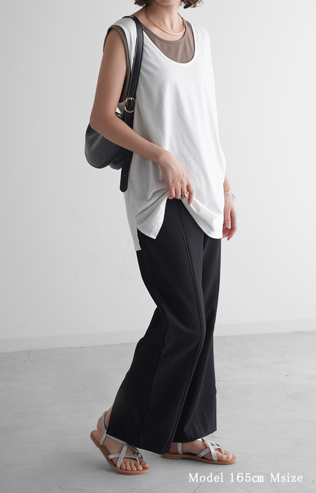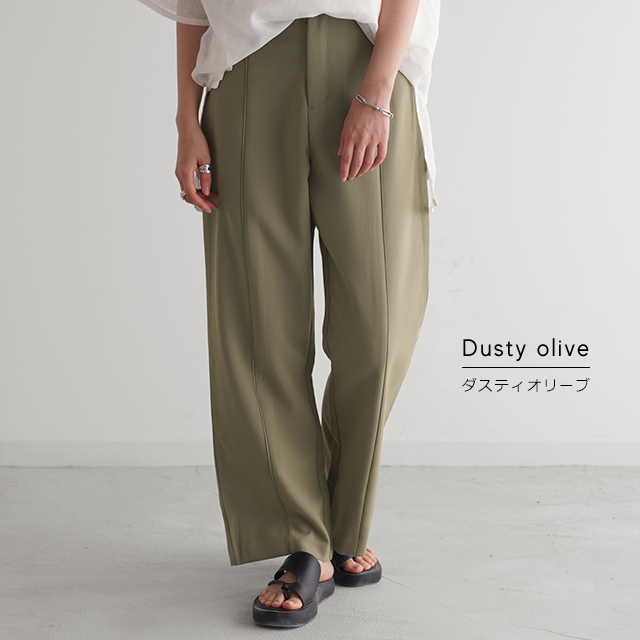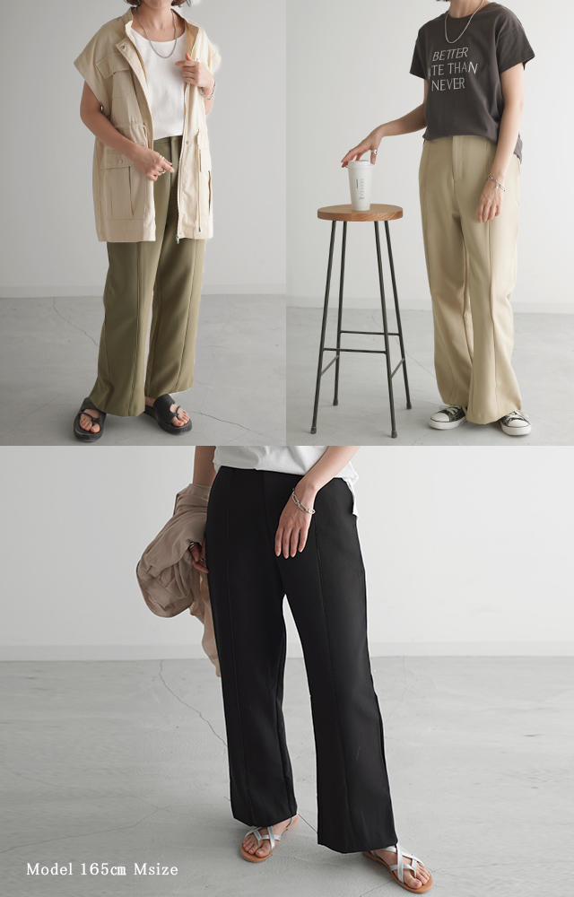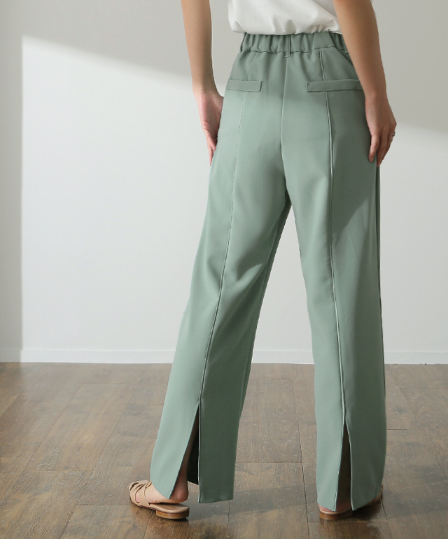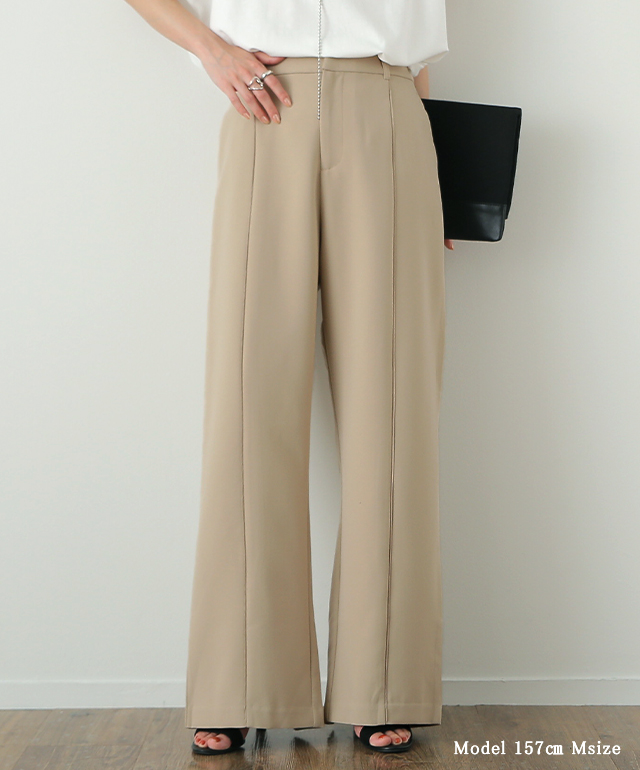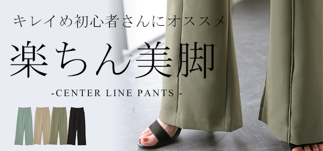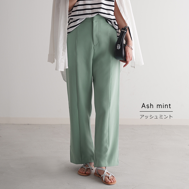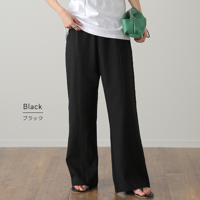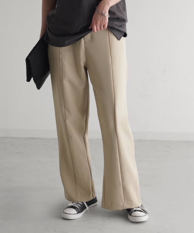 こなれ感を演出するセンターライン入りイージーパンツ。