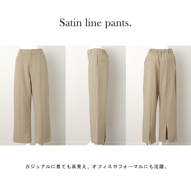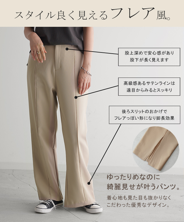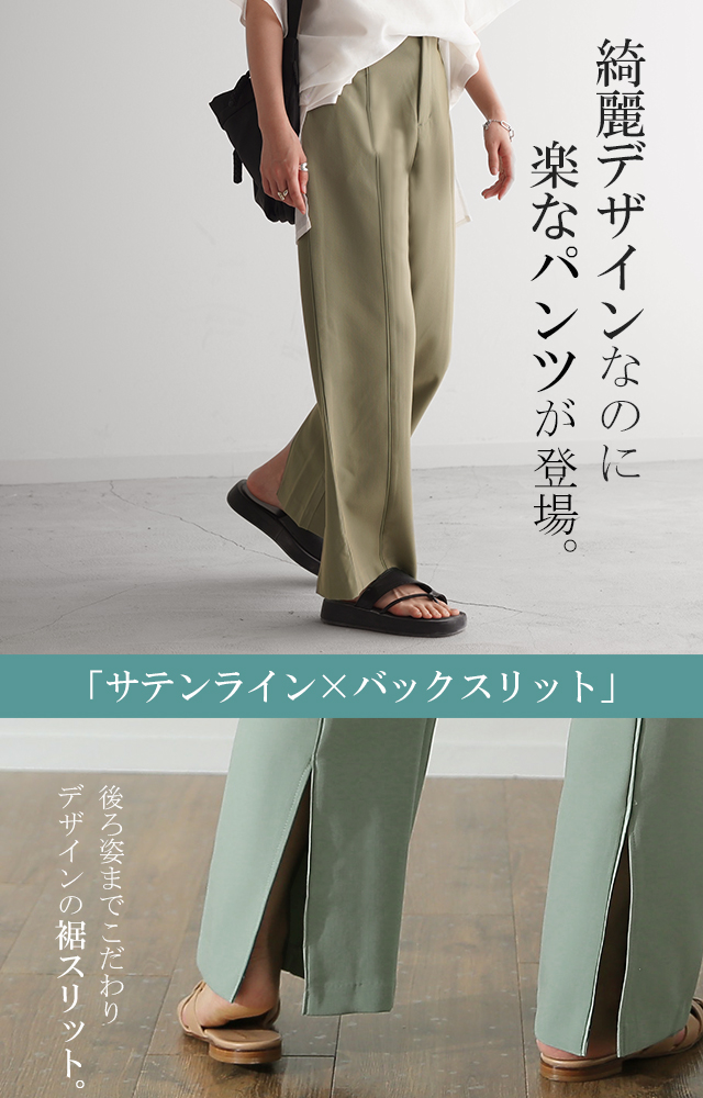 ずぼん サテン ライン ラインパンツ バックスリット センタースリット イージーパンツ セミフレア セミフレアパンツ ボトム ワイドパンツ フレア風 センターライン サテンライン センタープレス サテン ストレッチ ストレスフリー 伸びる 無地 薄手 薄目 薄め 薄い 厚手 厚め ロング ロングシーズン オールシーズン ゴムウエスト ゴムウェスト ウエストゴム ウェストゴム ゴム レイヤード トール丈 トール トールサイズ 高身長 170cm 長い 長め 脚長 脚長効果 美シルエット 美脚 美脚パンツ 美尻 小尻 ゆったり ゆる ゆったりサイズ ラクチン らくちん 楽ちん 楽 ラク 動きやすい 重ね着 重ね レイヤードコーデ 体型カバー 大きいサイズ プラスサイズ ビッグ ビック big ビックシルエット ビッグシルエット ビックサイズ ビッグサイズ オーバーサイズ オーバー 着痩せ 大き目 大きい 大きめ スッキリ すっきりフリーサイズ フリー S M L LL 2L XL 3L XXL LLL ランチ デート お出かけ 旅行 飛行機 カジュアル ナチュラル 大人カジュアル ベーシック オフィス オフィスカジュアル フォーマル テレワーク リモートワーク リモート オンライン飲み会 おうち時間 お家時間 着回し 母の日 プレゼント ギフト 贈り物 クリスマス シンプル 大人 大人カジュアル オトナ 女性 綺麗 綺麗目 きれい キレイ キレイめ キレイメ きれいめ 高見え 上質 上品 レディースファッション 20代 30代 40代 50代 おしゃれ お洒落 オシャレ 可愛い かわいい カワイイ カッコいい 格好良い カッコイイ ブラック ベージュ ベージュ系 ライトベージュ ブルー アッシュブルー ミント アッシュミント カーキ ダスティ オリーブ ダスティオリーブ 春 夏 秋 冬 春夏 秋冬 HUG.U HUGU ハグユー はぐゆー