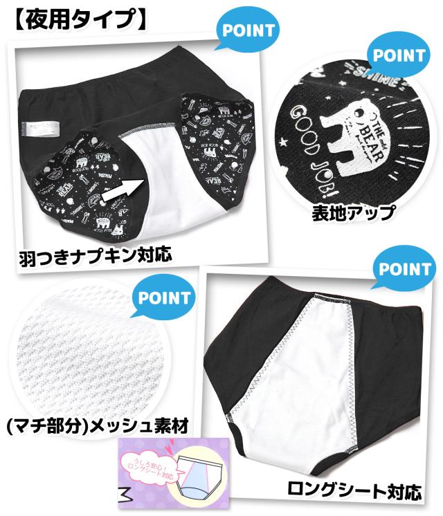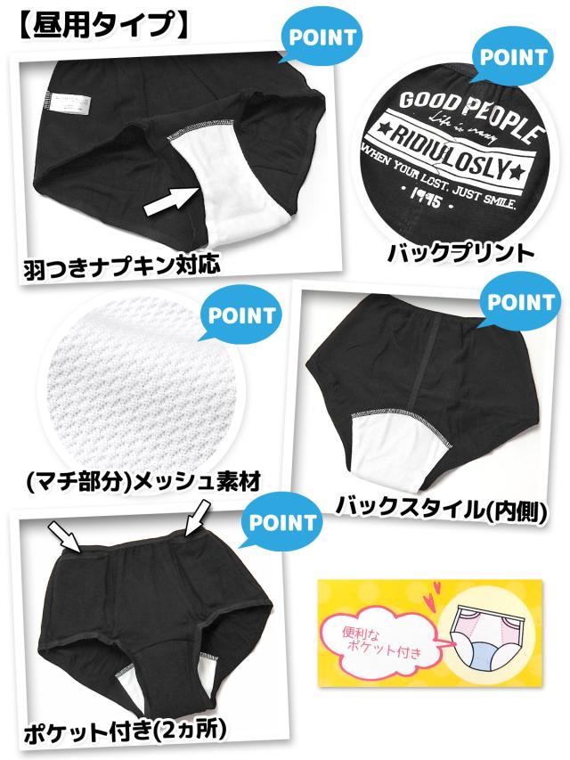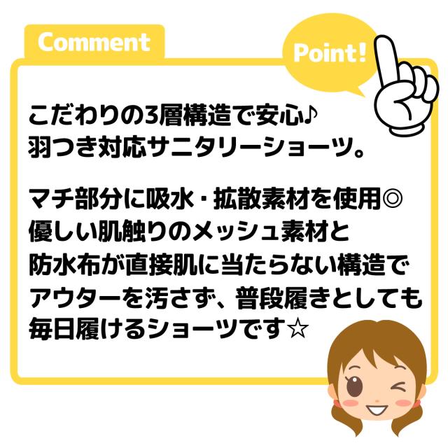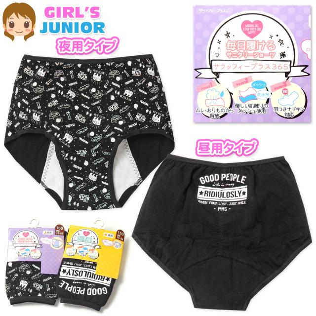 【送料無料】女児 ジュニア サニタリー ショーツ 生理用 羽つき対応 夜用 昼用 3層構造 毎日履ける 下着 子供 yg-1321【メール便対応】