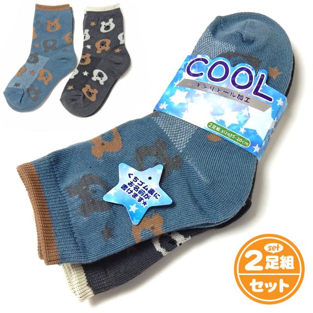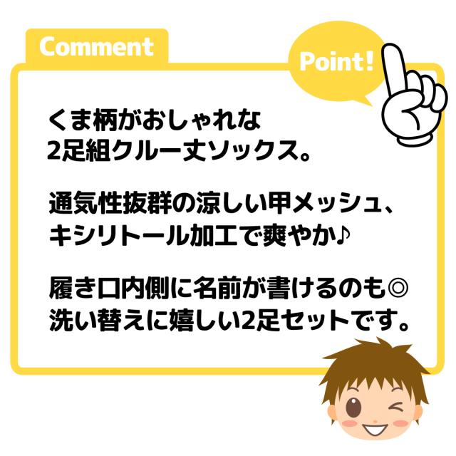 【送料無料】2足組セット 男児 キッズ クルー丈 ソックス 靴下 キシリトール加工 甲メッシュ 15-20cm yg-1396a【メール便対応】