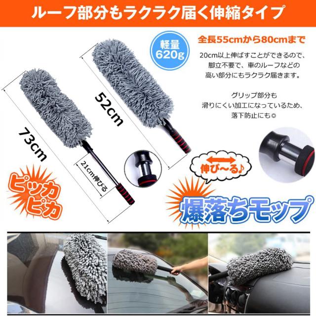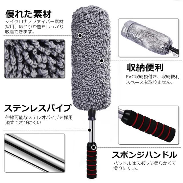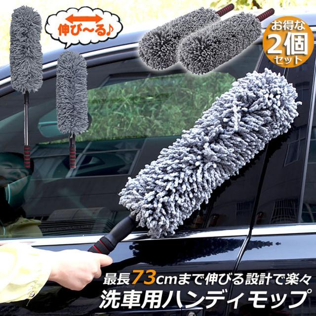 ハンディモップ 収納 おしゃれ 伸縮 車用 2個セット カーダスター 伸びる ハンディモップ 洗車ブラシ 車用ほこり取り モップ ダスター 伸縮 73CM ボディ ホイール用 傷防止 軽量